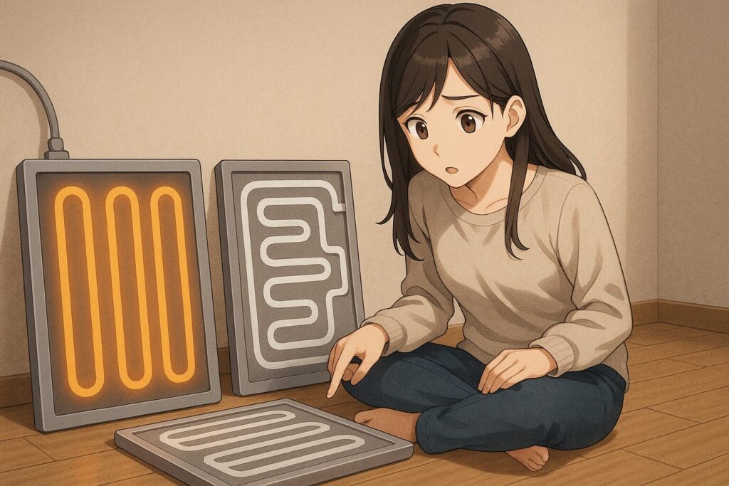 床暖房を検討するなら、ここは避けて通れません。電気式と温水式は、同じ「床が暖かい」でも、コストの出方と向き不向きが違います。私の感覚だと、電気式は“シンプル”、温水式は“システム”ってイメージ。だから導入目的が曖昧だと、どっちも中途半端になりやすいです。