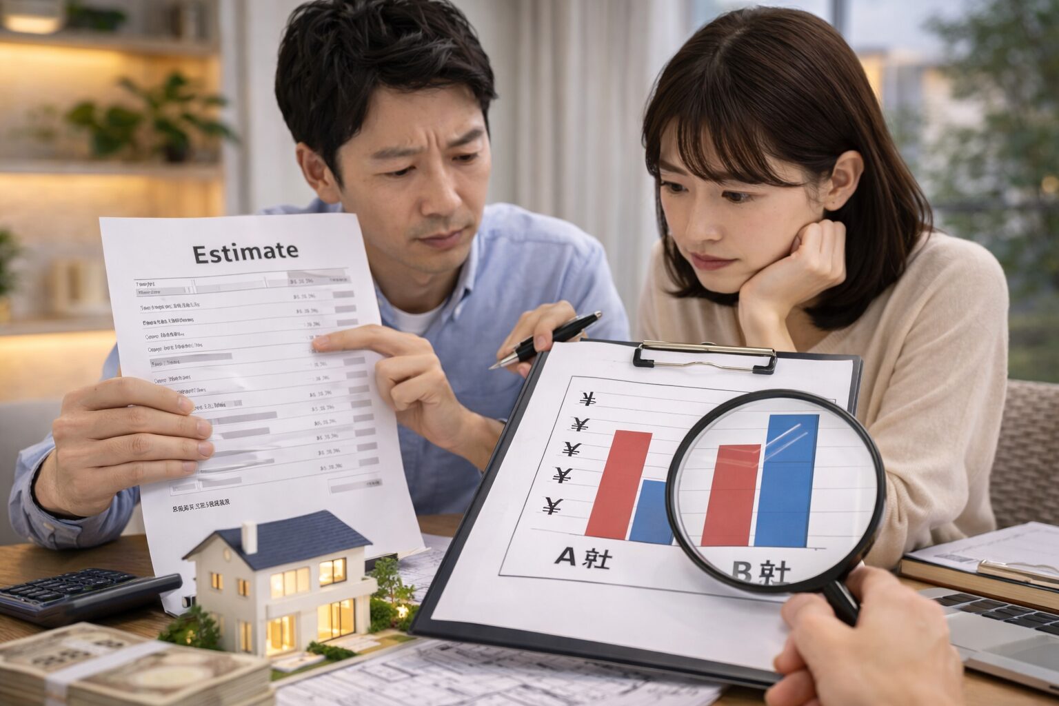 このページでは、ハウスメーカー見積書の見方を、初心者でも迷わない順番で整理します。見積もりチェックリストで抜け漏れを潰しつつ、見積もり比較テンプレートで他社比較までできるようにします。さらに、追加工事の見積がいつ必要になるのか、価格交渉のポイントと質問例までまとめるので、「あとから想定外に増える」をできるだけ減らしたい人に向けた内容です。