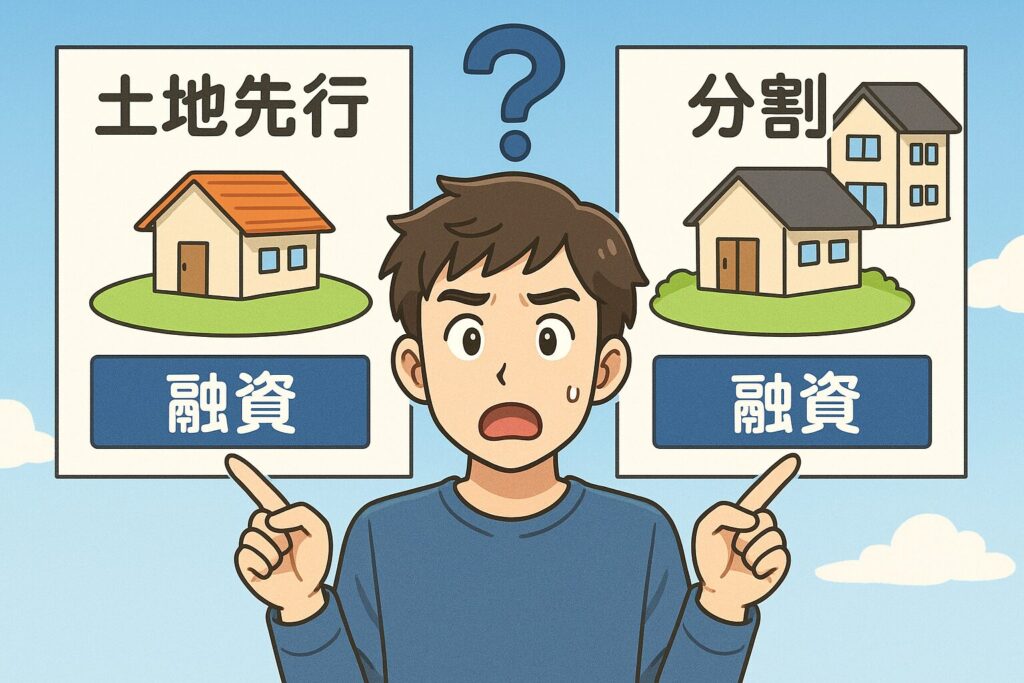 ここでのポイントは、金融機関が土地単体への融資を住宅ローンとして認めているわけではなく「建物を建てる前提で、土地部分の融資を先に分割して行う」形であるという点です。
