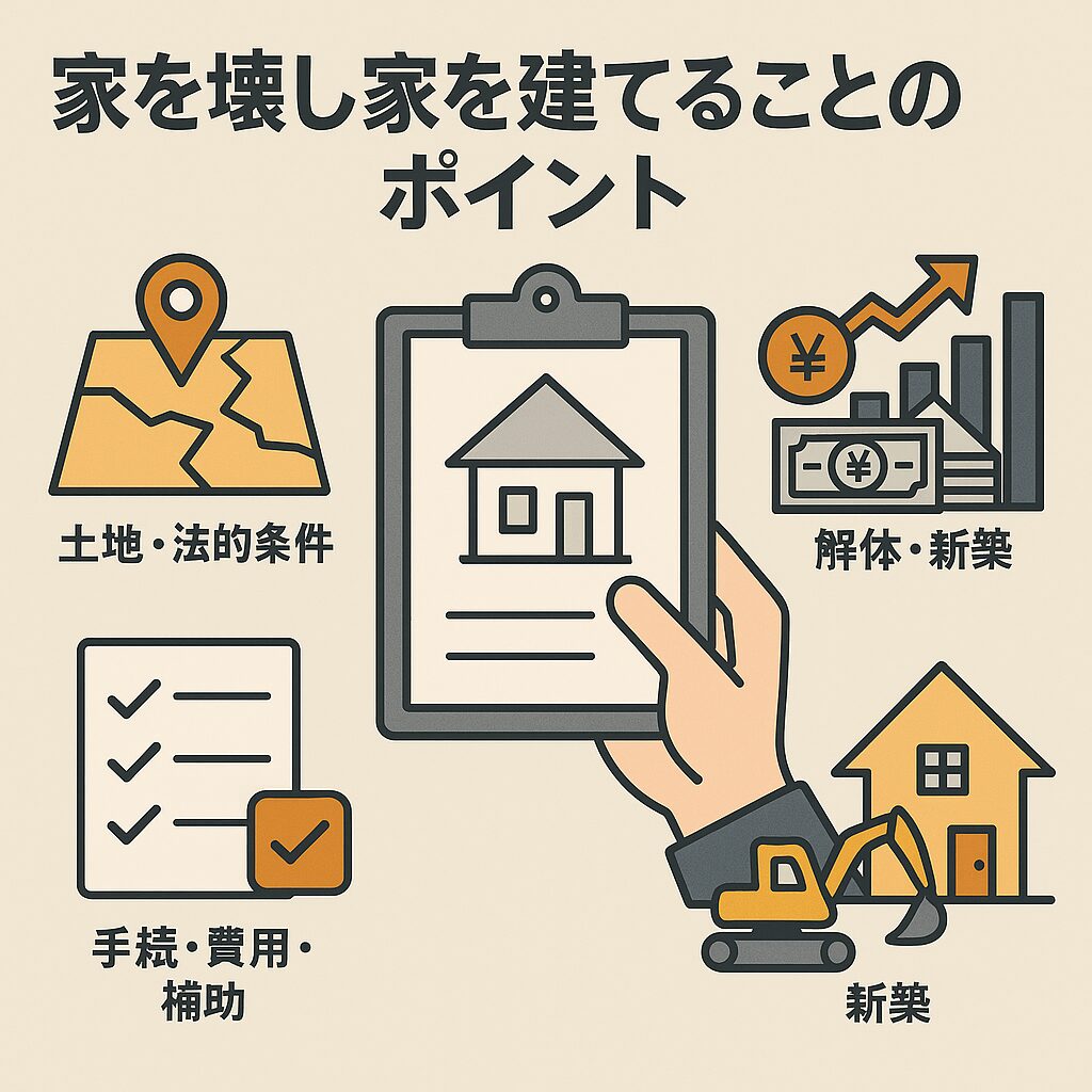 まずは、家を壊して家を建てる計画にあたって、とくに押さえておきたい条件や準備事項を整理します。