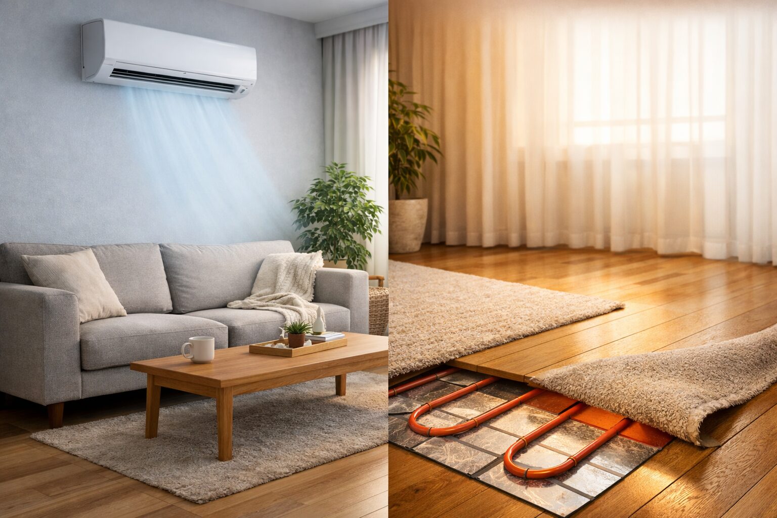 いちばん現実的なのは、床暖房とエアコンの併用です。理由は、それぞれの得意分野がはっきりしているからです。