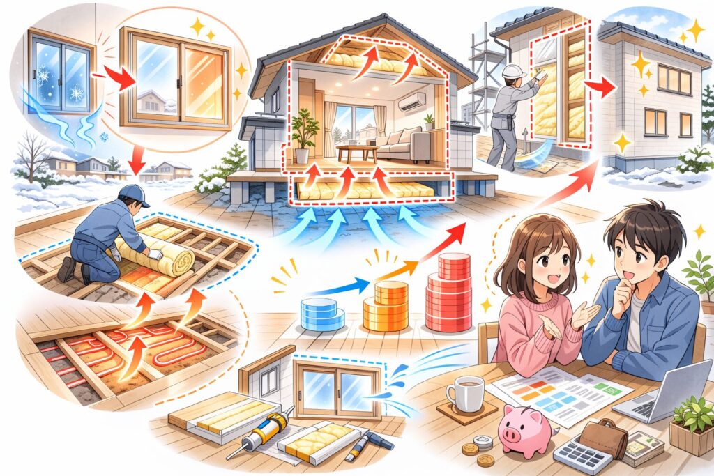 私のおすすめは、いきなり大工事に行く前に、窓・床・気密の順で弱点を潰すこと。体感に直結しやすいところからやると、投資対効果が見えやすいです。