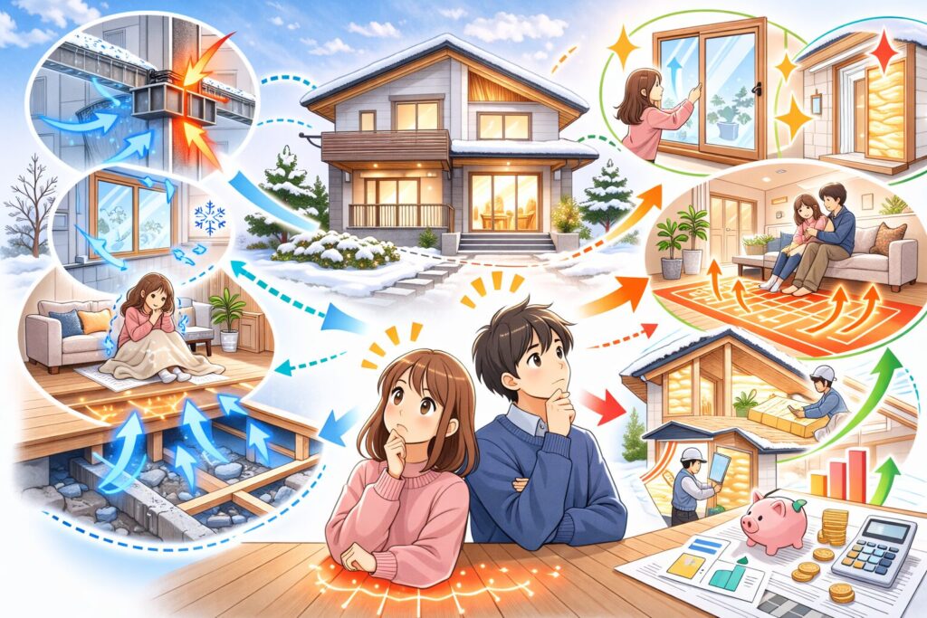 まずは「なぜ寒いのか」を仕組みから整理します。原因が分かると、対策の優先順位がはっきりし、過剰なリフォームや設備投資を避けやすくなります。