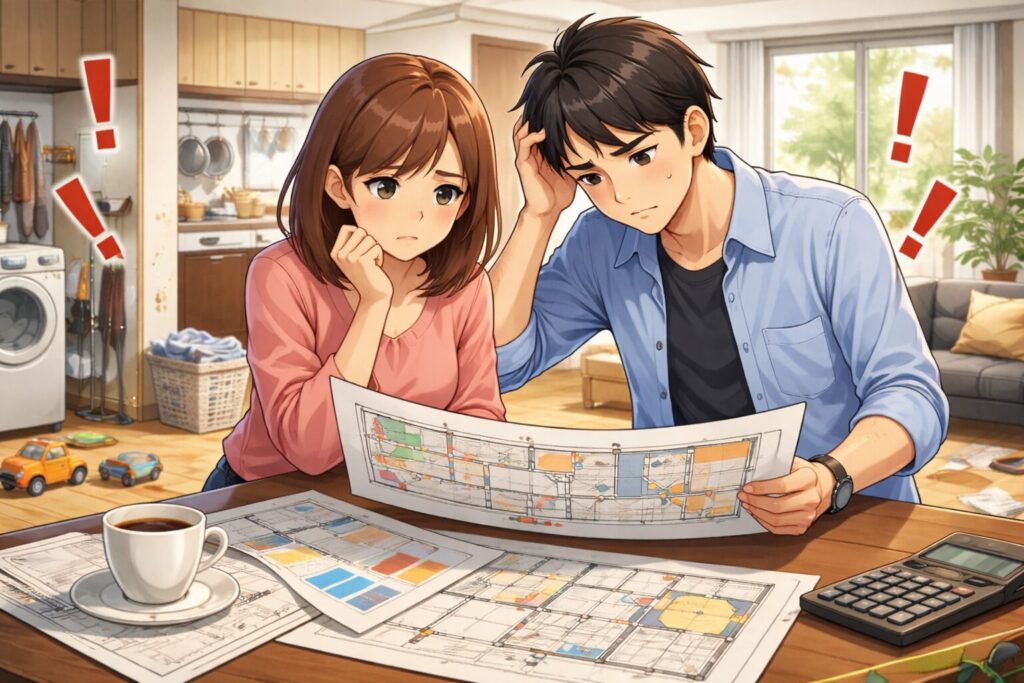 特に後悔が出やすいのは、「洗面が渋滞する」「干す場所が遠い」「ゴミが外へ出しにくい」の3つ。ここは間取りが確定する前に潰す価値が大きいです。