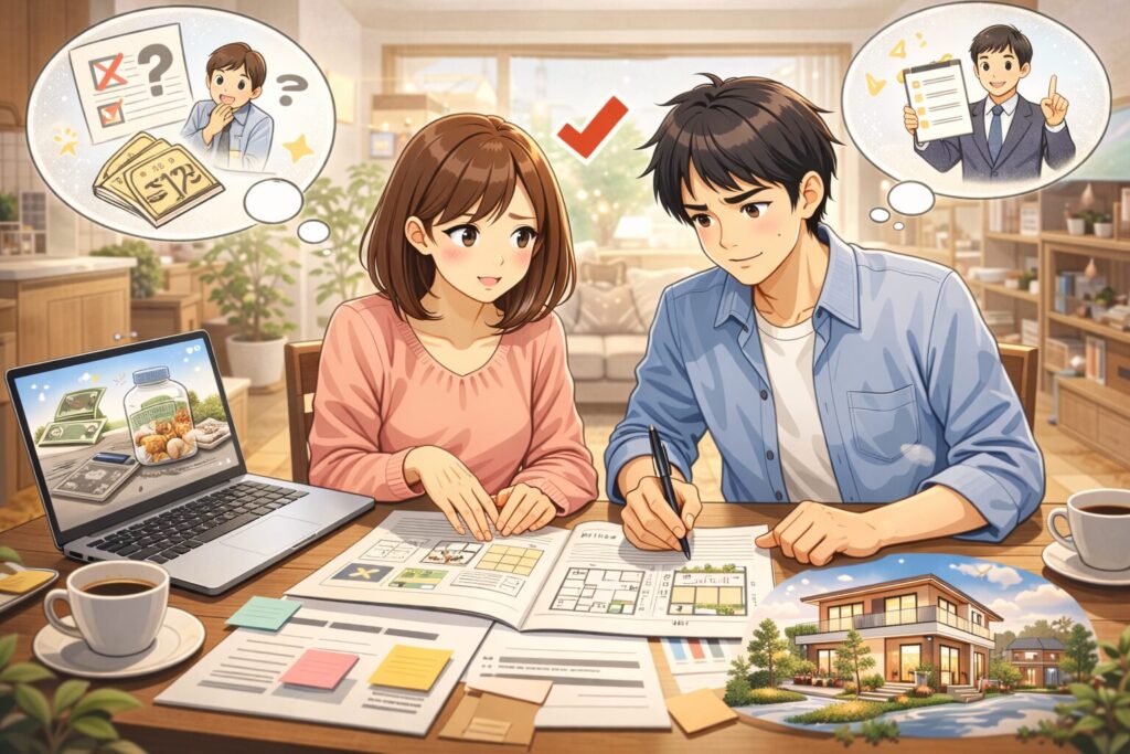 後悔の多くは「確認不足」から起きます。展示場の初回提案だけで決めず、条件を揃えて見積や仕様を整理してもらうと判断が安定します。
