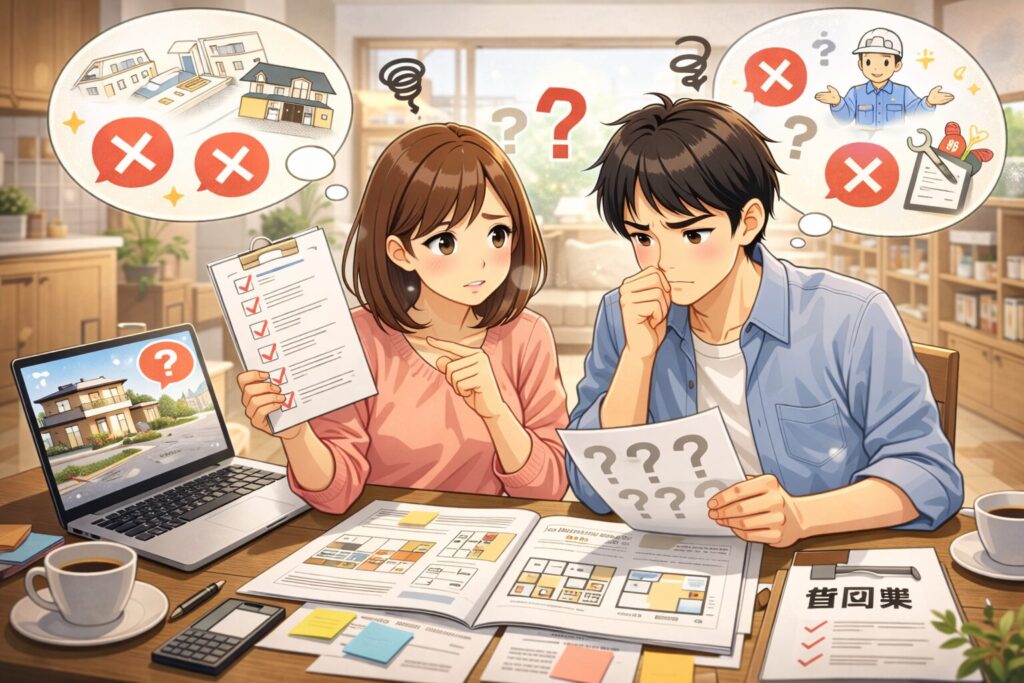 ここでは、積水ハウスでよく挙がる後悔を「共通点」で整理します。個別の体験談は状況が違うので、私はまず“何が起点で後悔につながるのか”を見ます。結論、事前の整理不足と確認不足が重なると、価格・間取り・担当者対応でズレが出やすいです。あなたが同じ道を踏まないように、典型パターンと回避策をセットで押さえていきます。