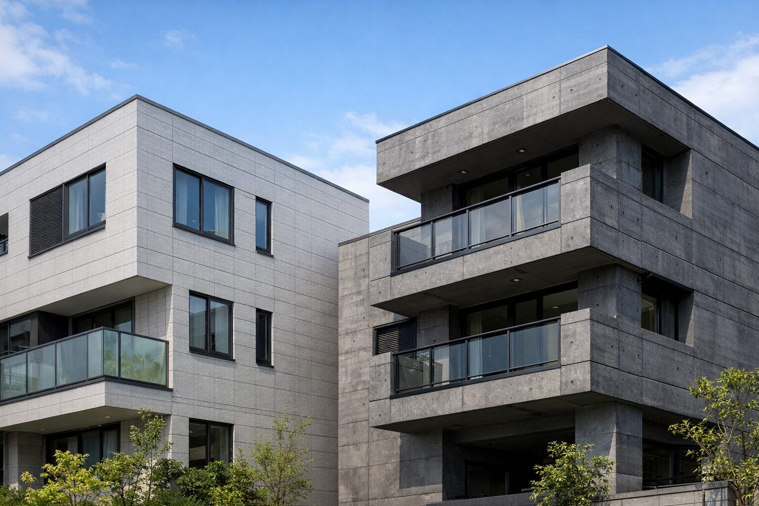 コンクリート系外壁の魅力は、やはり見た目の重厚感と安定感です。街中で見たときに「しっかりした家だな」と感じやすく、水平ラインや縦ラインを強調した外観デザインにも合わせやすいです。