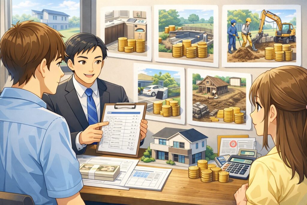 追加費用で一番多いのは、シンプルに言うと「標準からのアップ」と「土地条件による工事」です。積水ハウスは標準仕様が高めな一方で、こだわりを入れると上がりやすいのも事実。私はここを“最初から想定しておく”のが大事だと思っています。