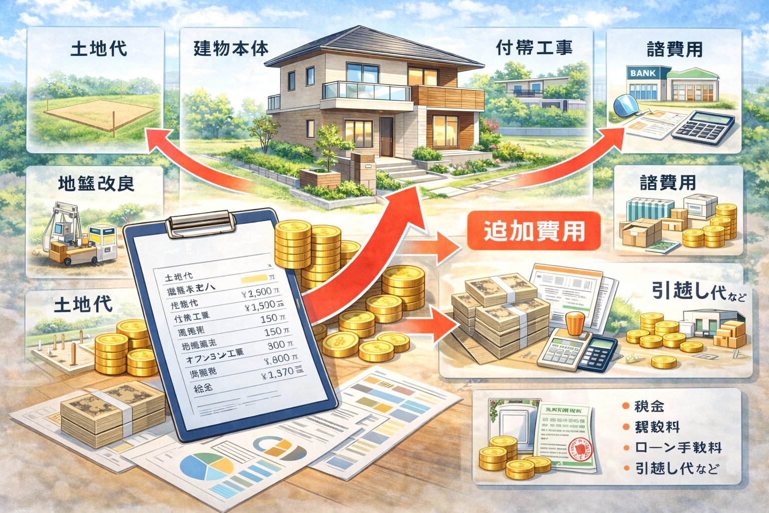 ローンと諸経費は「家の金額とは別枠で出るのに、見落とされやすい」代表です。登記費用、火災保険・地震保険、ローン事務手数料や保証料、印紙代、各種申請費などが絡みます。